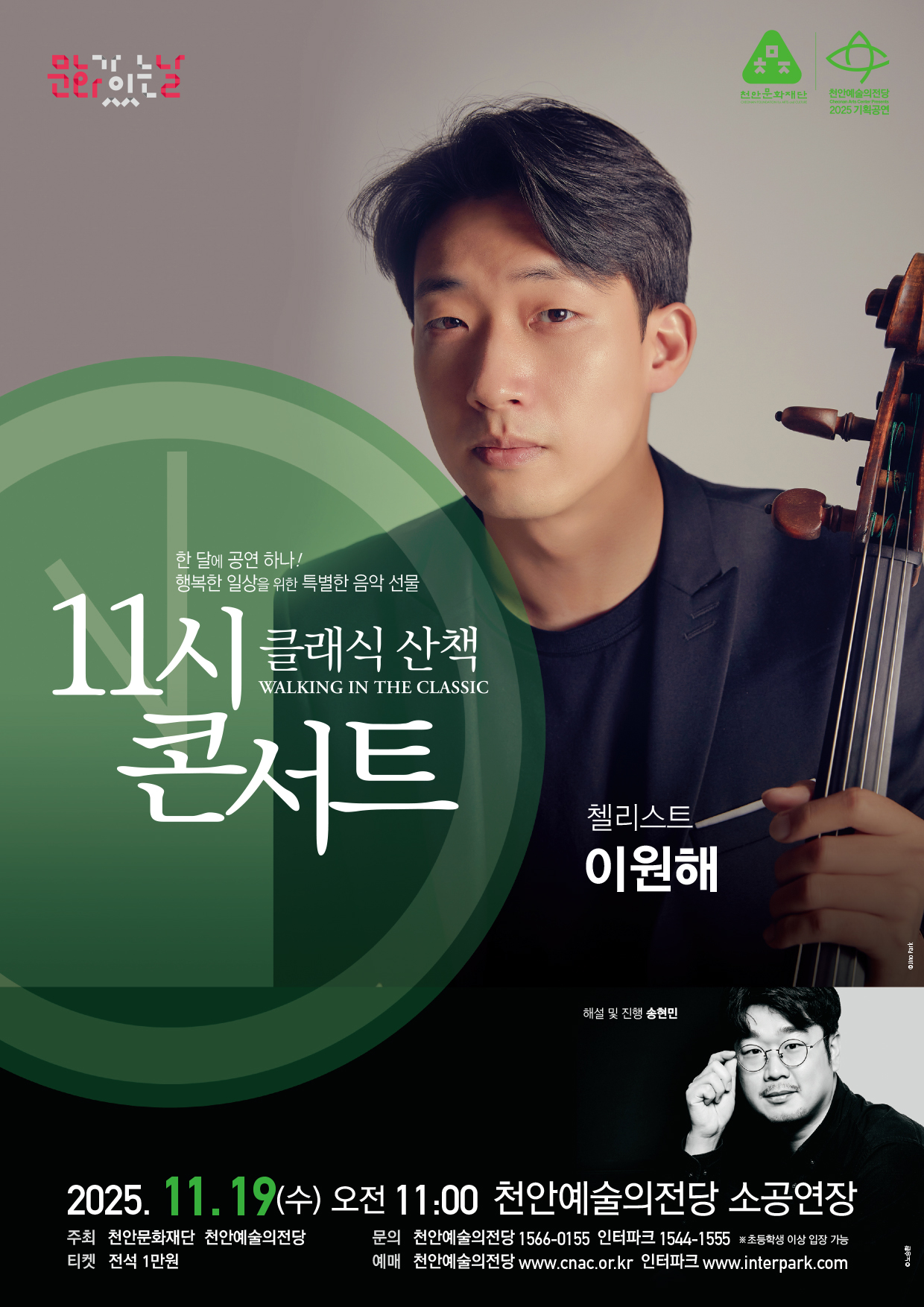 장소천안예술의전당 소공연장기간2025년 11월 19일~2025년 11월 19일