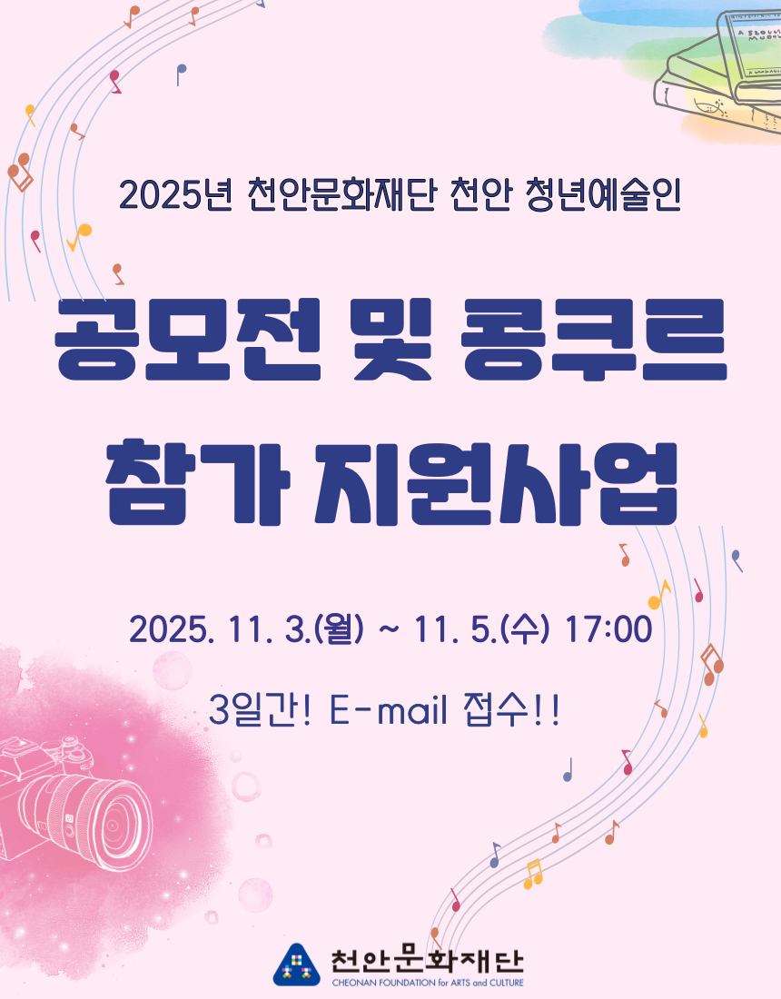 [2025-140호] 천안 청년예술인 공모전 및 콩쿠르 참가 지원사업 모집 공고10-15