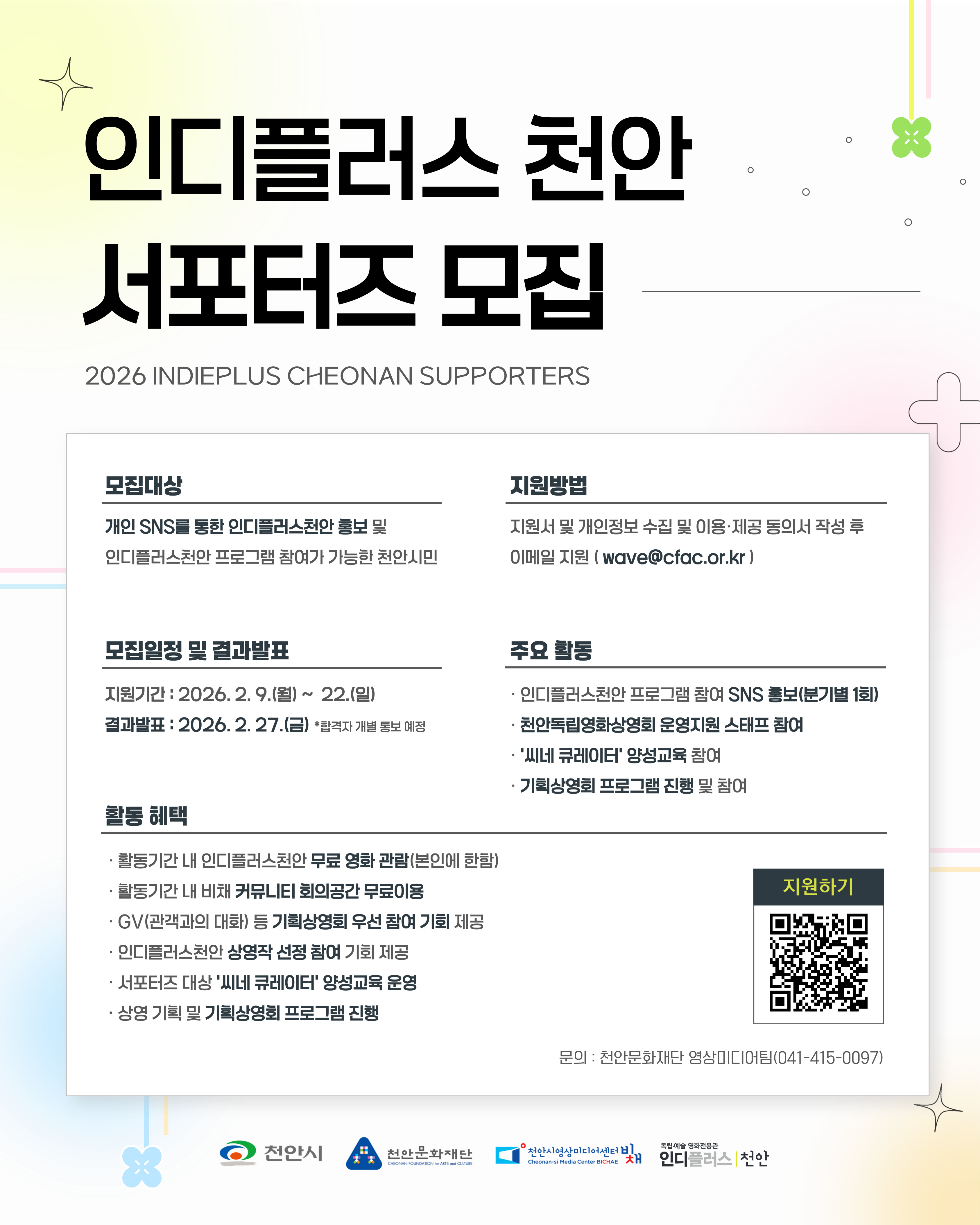 [2026-22호] 2026 인디플러스 천안 서포터즈 모집 공고02-07